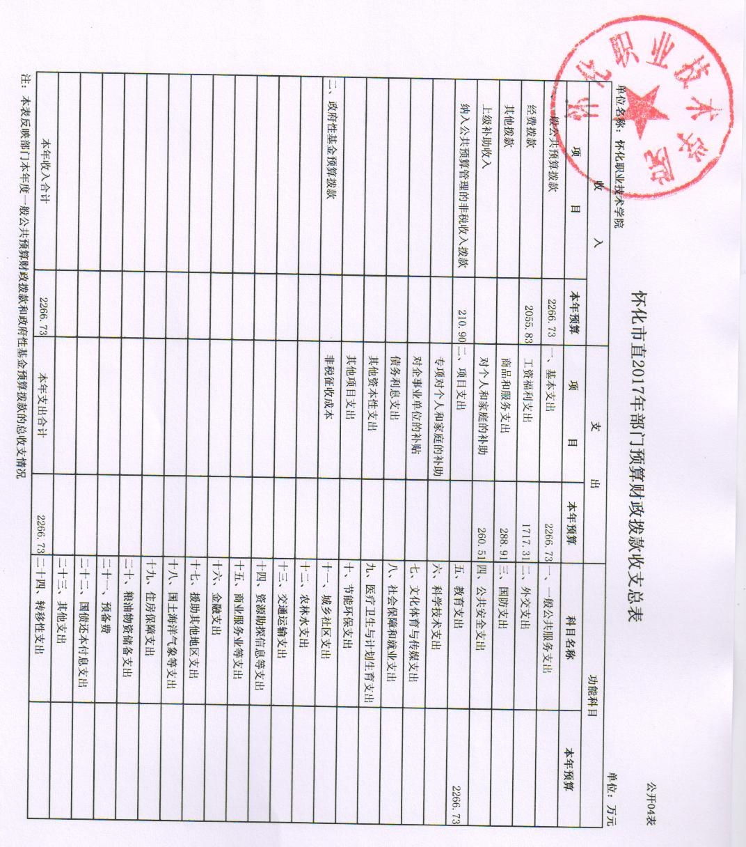 怀化职业技术学院2017年部门预算公开说明
